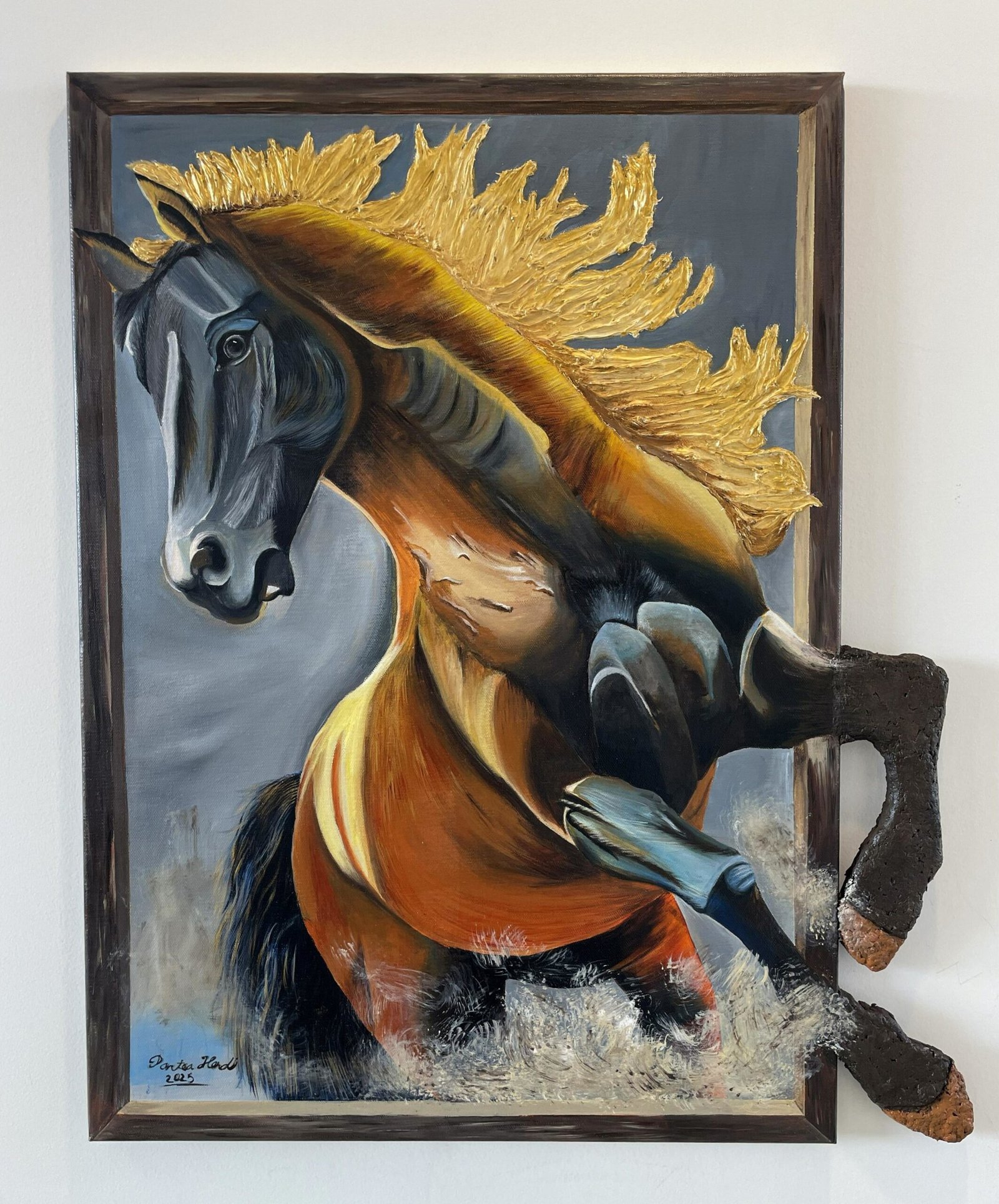 Wild Soul. This acrylic 3D painting captures the raw energy, strength, and freedom of the horse. Measuring 60×71 cm, the artwork features dynamic textures that push beyond the frame, creating a powerful sense of motion and life.